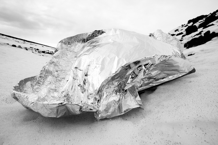 à l'abri dans un fossé